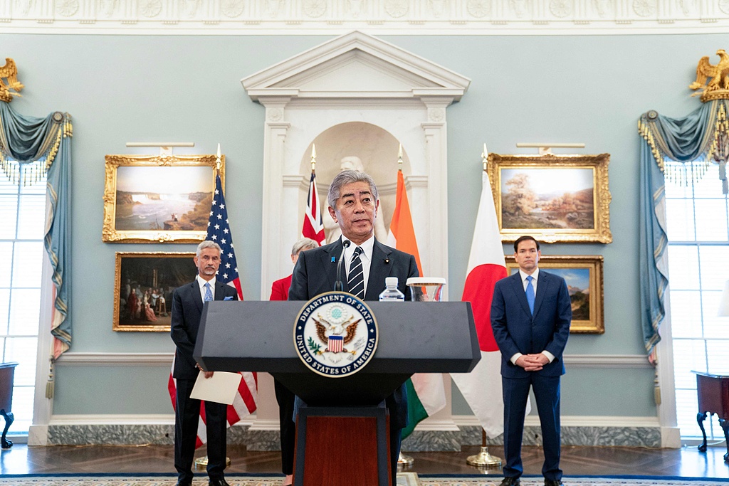 当地时间2025年7月1日,美国华盛顿特区,日本外务大臣岩屋毅在美国国务院与印太“四方安全对话”机制成员国举行记者会。视觉中国 图