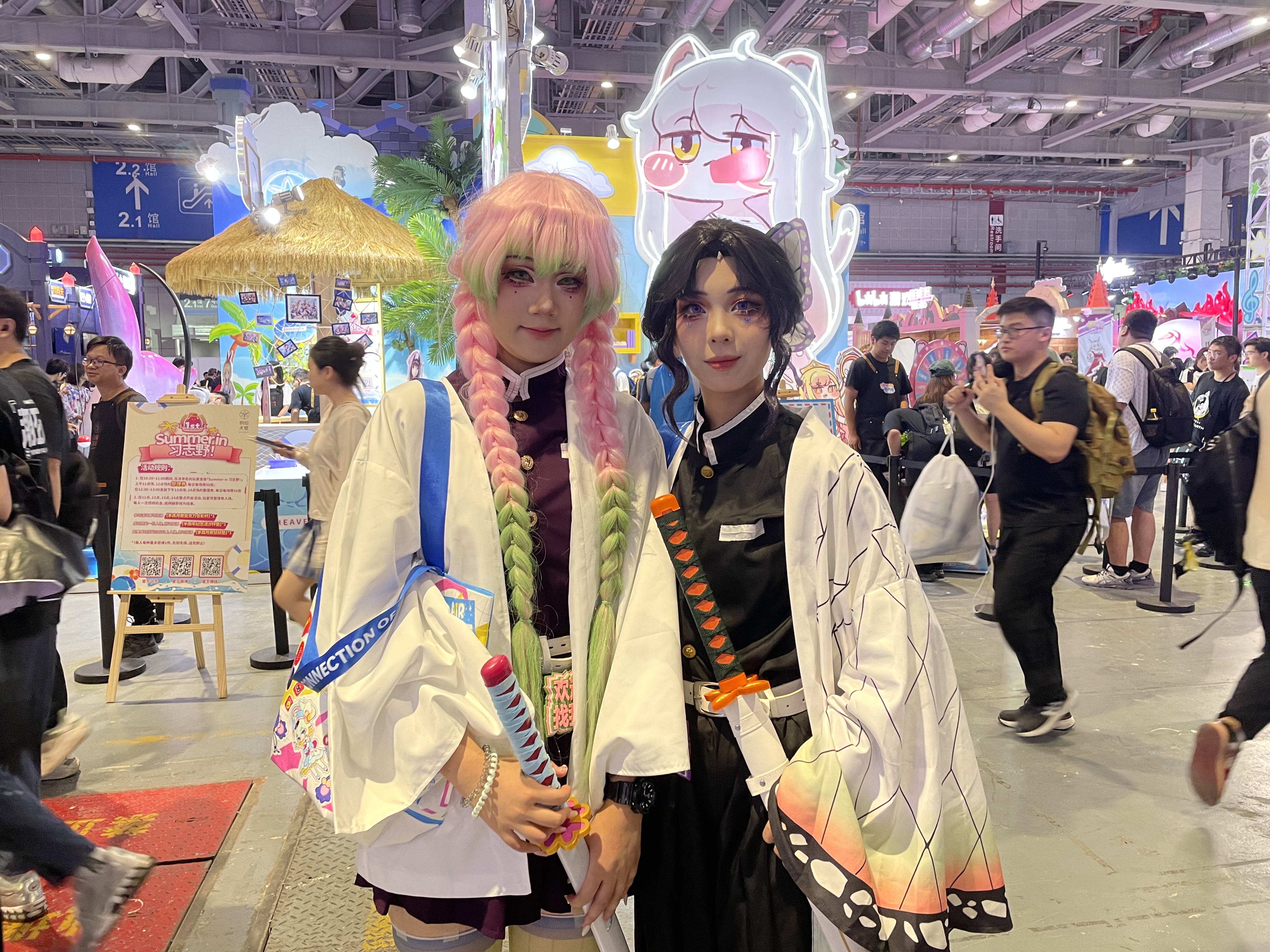高二学生小李将自己打扮成了番剧《鬼灭之刃》里的角色蝴蝶忍。她说,选择这个角色,一是因为喜欢,二是觉得自己的长相比较适合扮演这个角色,“看了动漫和漫画之后,我觉得她的长相和性格都很符合我的审美,而且《鬼灭之刃》8月份就要出一部电影,我就想趁着BW的时候可以cos一下。”一旁,小李的同学扮演的则是同作品中的另一名角色甘露寺蜜璃,为了这次BW,她们从4月底就做起了准备,在多个平台找不同渠道定制服装,就是想将这份回忆送给自己当“生日礼物”——二人的生日分别是7月3日和7月10日。