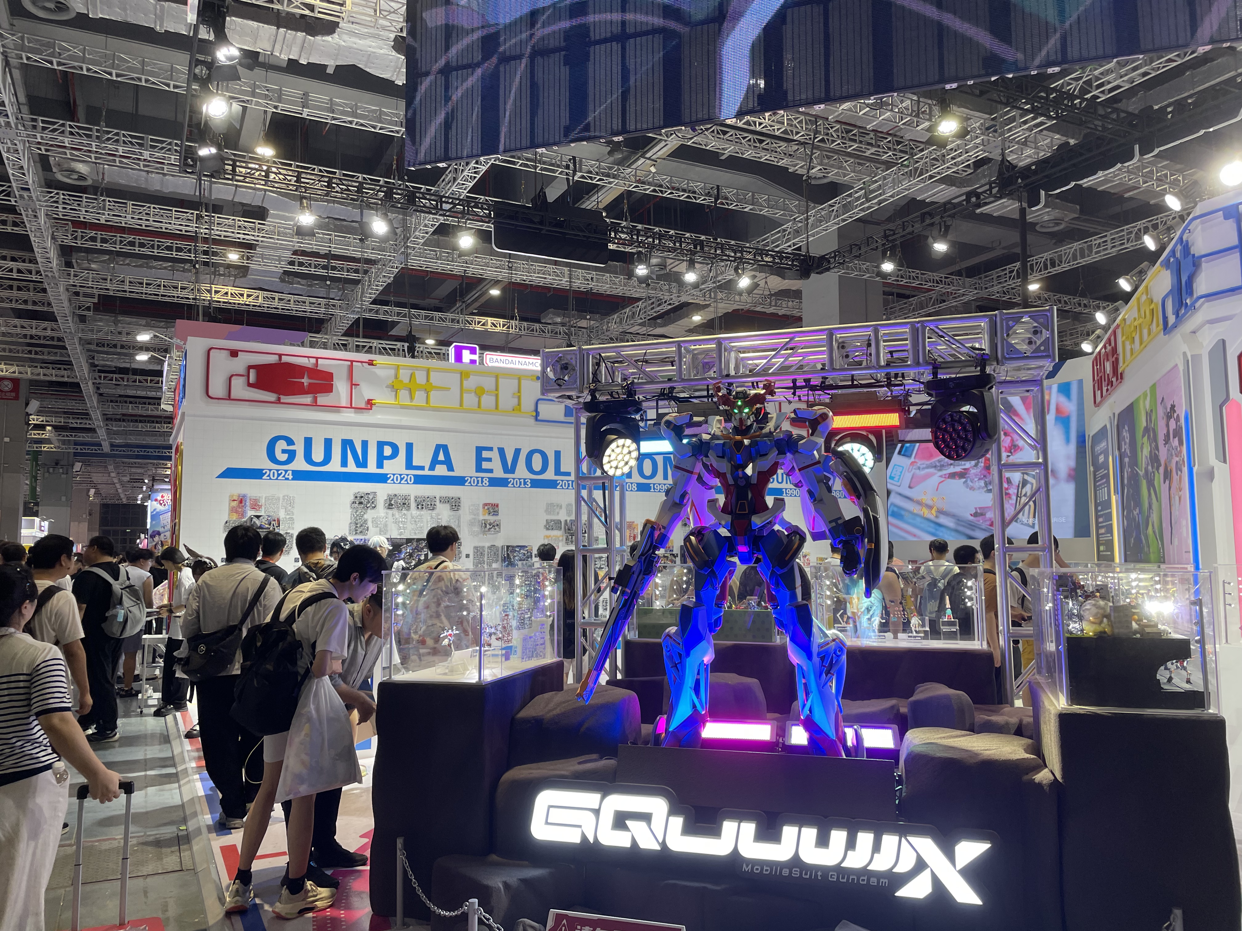 模玩区的热度也不落下风。在万代南梦宫展台,不少高达迷正饶有兴致地观摩玻璃柜中的模型展品,还有许多人排队购买“会场限定款”特殊配色的产品。来自深圳的小钟说,自己是前两年在朋友的推荐下接触了高达系列的动漫作品,随之也对高达模型产生了兴趣。今年刚刚参加完高考的他,与发小一道前来上海,第一次参加BW,“很热闹,很喜欢,第一次感受漫展这种氛围,我觉得还蛮震撼的。”他们打算在上海待两天,去高达基地看一下。