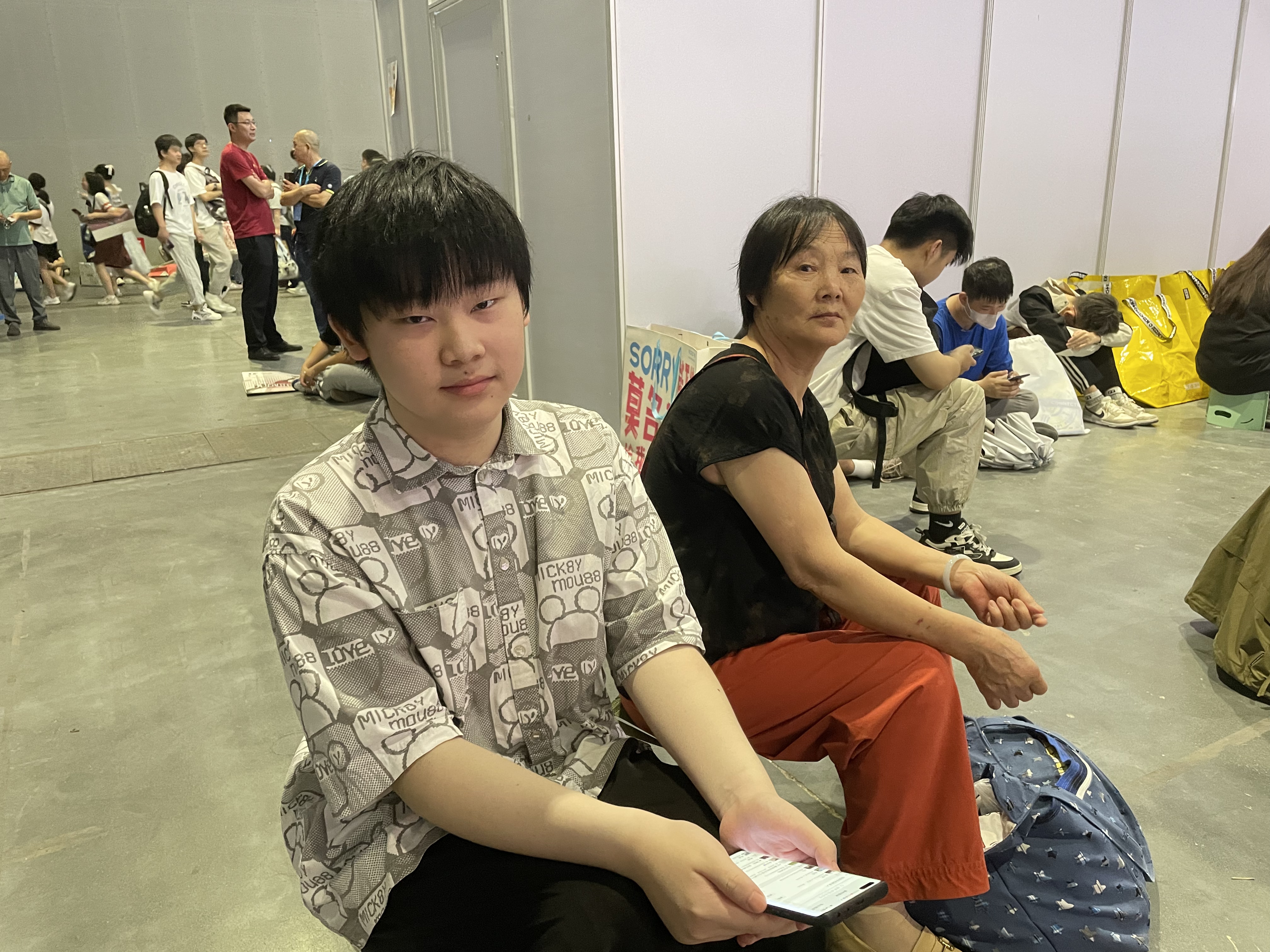 除了高中生、大学生,现场也有一些年纪较小的二次元迷。今年初二的蒋同学在妈妈、外婆的陪同下,从苏州前来参加这场盛会。他说,自己是“B站深度用户”,平时喜欢看游戏分区,这次想来BW也是因为在B站上刷到了相关消息。蒋同学的妈妈告诉记者,自己对二次元文化并不了解,但因为孩子想来,便专程调了休带他来上海玩。祖孙三人在游戏展厅的一角稍作休整,便打算前往下一个展台。